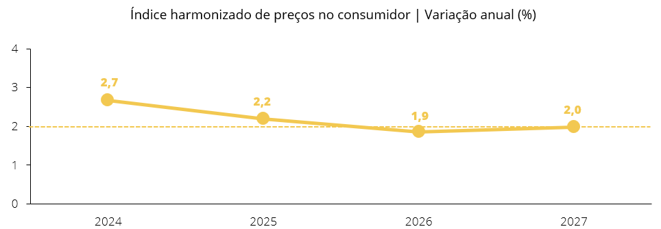 Inflation dynamics are expected to stabilise, with headline inflation converging towards the European Central Bank’s (ECB) 2% price stability target. The Harmonised Index of Consumer Prices (HICP) is projected to average 2.2% in 2025, 1.9% in 2026, and 2.0% in 2027, marking the successful conclusion of a disinflationary cycle that began in 2023.
