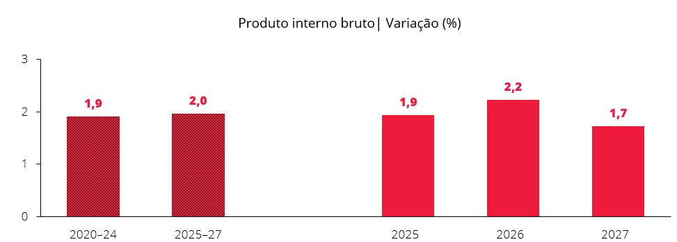 Export growth will moderate to 2.0% annually (compared to 4.6% in the previous decade), reflecting weaker external demand and the impact of rising trade tariffs, while the services sector - now accounting for roughly three-quarters of economic activity - will continue to underpin structural growth.