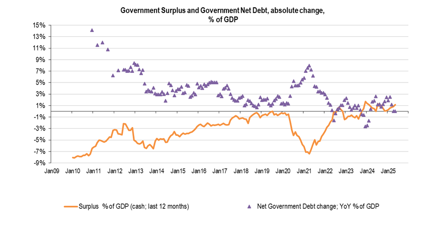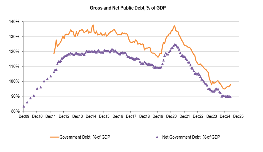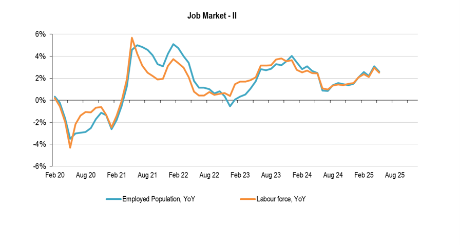 Average Salary (quarterly data): average gross salaries are growing slightly above 5% (last data released March 2025; 5.2%YoY), showing a small adjustment vs. figures between 6.1% and 6.7%; over 2024. Nevertheless, remain well above core CPI, feeding consumption/economic activity.