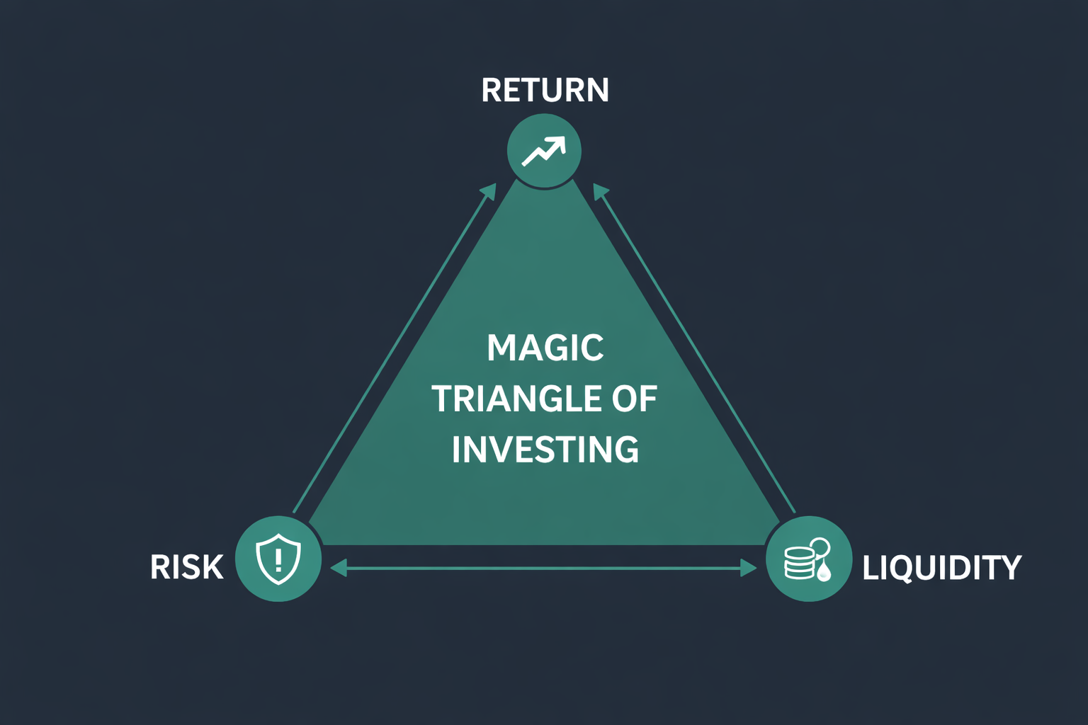 Every investment decision ultimately comes down to three fundamental factors: return, risk, and liquidity. These three pillars form what is often referred to as the “Investment Triangle.”